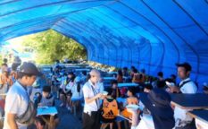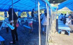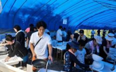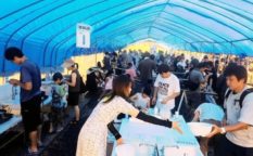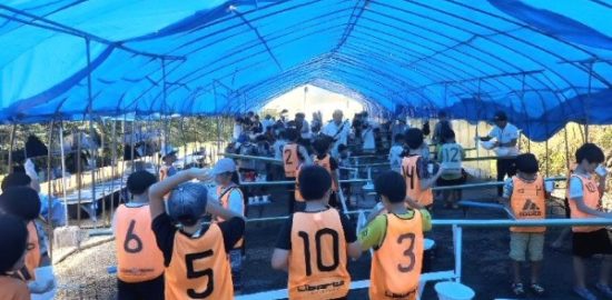 サッカークラブ。青空テントで楽しむ。流しそうめん食べ放題。