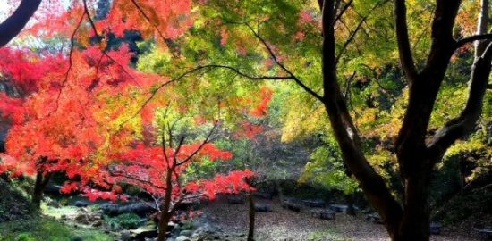 色づく木々とせせらぎが調和する、公園で出会う静かなひととき