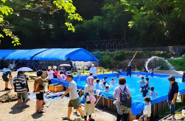 冷たくてきれいな地下水を使った天然水プールで楽しむ夏の水遊び体験