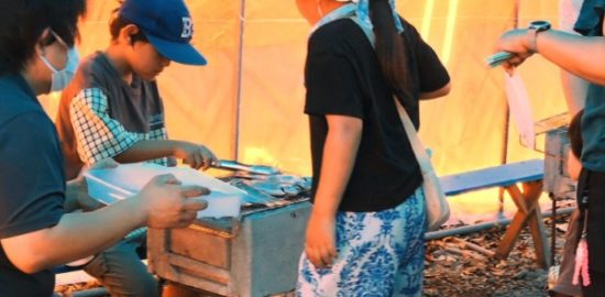今まで生きていたニジマスを炭焼きで味わう、食育の時間