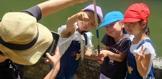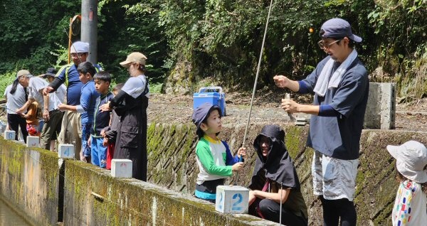はじめてのニジマス釣りに挑戦!ちびっ子の嬌声が楽しい水辺体験