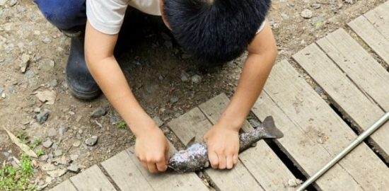 ニジマス釣りで学ぶ自然のしくみ体験。遊びながら知る命の大切さ。