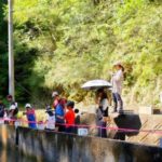 岩山に囲まれ、木陰が心地よいニジマス池。澄んだ冷たい水の中を元気に泳ぐ魚たちを前に、子どもたちは真剣な表情で釣り糸を垂らします。初めて竿を握る子も多く、パパに教わりながら挑戦。水の冷たさや魚の力強い引きを体感することで、自然の恵みや命の大切…