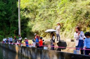 池沿いで行われるニジマス釣りは、子どもから大人まで楽しめる身近なレジャーとして親しまれています。護岸に並び釣り竿を構える光景は季節の風物詩でもありますが、混雑時には周囲への配慮が欠かせません。通路に立ち、日傘を差したまま見学する人の姿が見られます。日傘は日差し対策として有効ですが、狭い釣り場では通行の邪魔になり、釣り竿の振りや仕掛けの操作を妨げる原因になります。また、不意に傘が当たることで事故につながる恐れもあります。安全で快適にニジマス釣りを楽しむために、日傘の使用は遠慮していただきます。家族連れや初心者が多い場所では、周囲をよく見渡し、通路を確保することが求められます。マナーを守り、誰もが気持ちよく過ごせる環境づくりを心掛けてください。小さな心配りが、安全と楽しさを守ります。