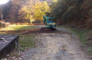 山間部の静かな環境の中で進められている駐車場整備工事の様子。小型重機を使用し、地面の掘削や整地を行うことで、車両が安全かつスムーズに出入りできるスペースを確保しています。周囲の自然景観に配慮しながら作業を進めることで、利便性と環境保全の両立を目指しています。利用者が安心して訪れることができるよう、排水や路面の安定性にも注意を払い、長く快適に使える駐車場づくりを行っています。完成後は地域の活動や観光拠点としての活用も期待される場所です。