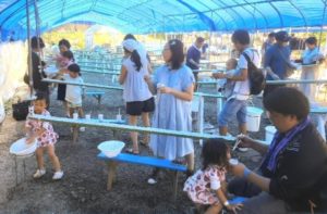 子どものペースに合わせて楽しめる、セルフスタイルの流しそうめん食べ放題。順番待ちや決まりが少なく、親子で声を掛け合いながら利用できるのが魅力です。屋根付きの会場で日差しを避けられ、小さな子どもも座って落ち着いて食事が可能。夏の思い出づくりにぴったりな、安心感のあるイベントです。あと片付けはきちんとしましょう。