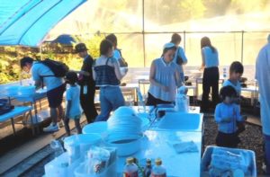 参加者自身が準備や片付けを行う、セルフスタイルの流しそうめん食べ放題。調理場には器や備品が並び、家族連れや子どもたちが自由に行き来しながら利用しています。スタッフがいないことで、気兼ねなく楽しめるのが特徴。みんなで協力しながら味わう、夏ならではの体験です。