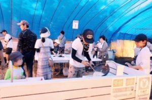 パパがそうめんをゆでて、ママとちびっこ達は麵つゆとそうめんを流す竹樋の掃除をします。家族みんなで楽しむセルフ式の流しそうめんです。食べ放題なので、お腹いっぱいになるまで何度でも味わえます。自分で準備すること楽しく、子どもたちはワクワク。竹樋の数が多く、落ち着いて食べられるのも安心ポイント。写真からも分かるように、家族で協力しながら楽しめる夏の人気イベントです。食事と体験が一緒になった、思い出に残るひとときを過ごせます。後片付けも忘れずしてください。
