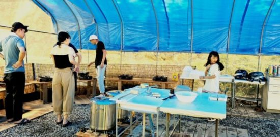 以前の流しそうめん茹で場所。涼を生む屋外ゆで場の風景