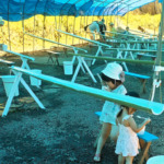 竹樋ゆったり配置で子供たちも安心。食べ放題流しそうめん
