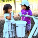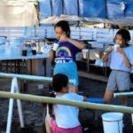食べ放題流しそうめん。竹樋そうじの清潔さが分かる幼児は掃除する。
