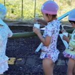 ダンスクラブの子どもたちが流しそうめんを楽しむ夏イベントの様子です。活動の合間にみんなで並び、そ…