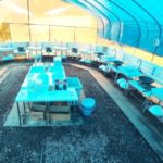 水栓付き流し台12台。うち熱湯が出るもの9台。コンロ9個。